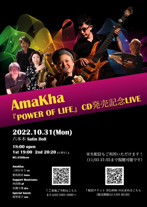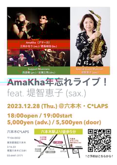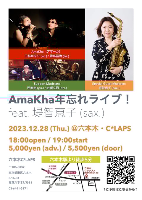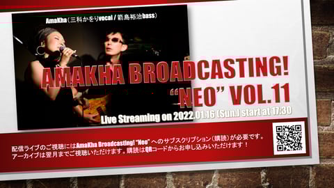 前回の投稿でもお伝えしましたが,先月28日に六本木C*LAPSで行われたAmaKha年忘れライブの模様が,鏡開きの1/11(木)23:59までツイキャスでご覧いただけます(有料)! ご視聴はこちらのページよりお申し込みください。