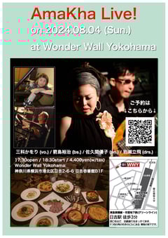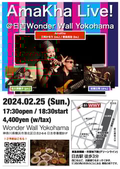 日吉Wonder Wall YokohamaでのAmaKhaライブまで2週間を切りました! 昨年9月に同会場・同メンバーで行われたライブのダイジェストがYouTubeに上がっておりますので是非ご覧ください。2/25のご予約はこちらからどうぞ!