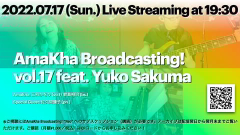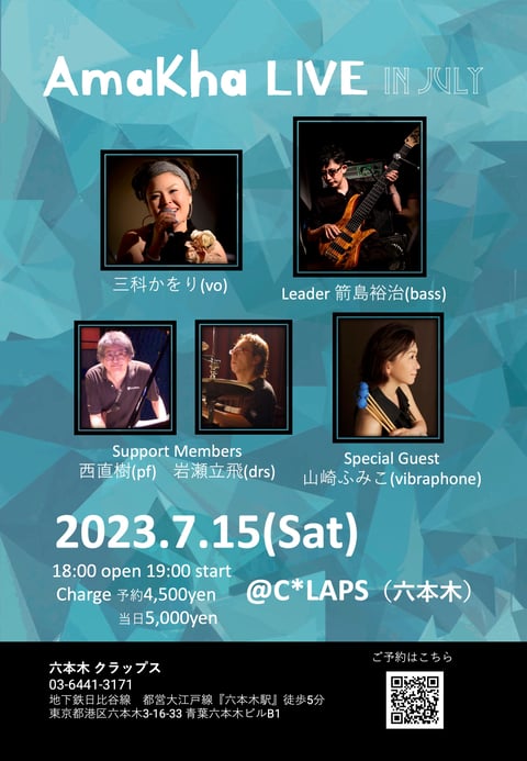 さて,7月のAmaKhaは配信とリアルライブの二本立てとなります! しかも前者は三科女史のバースデー配信,後者はゲストに天才ヴィブラフォン奏者・山崎ふみこ女史をお迎えするスペシャルライブです!