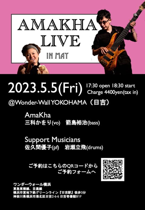 AmaKhaは1月はお休みをいただきますが2月には日吉のWonder Wall Yokohamaで今年初めてのリアルライブがあります(ご予約はこちらから!)。その他3月には千葉県,4月にも神奈川県でそれぞれライブが内定しており,情報がリリースされ次第こちらでも掲載していきますので楽しみにお待ちください。